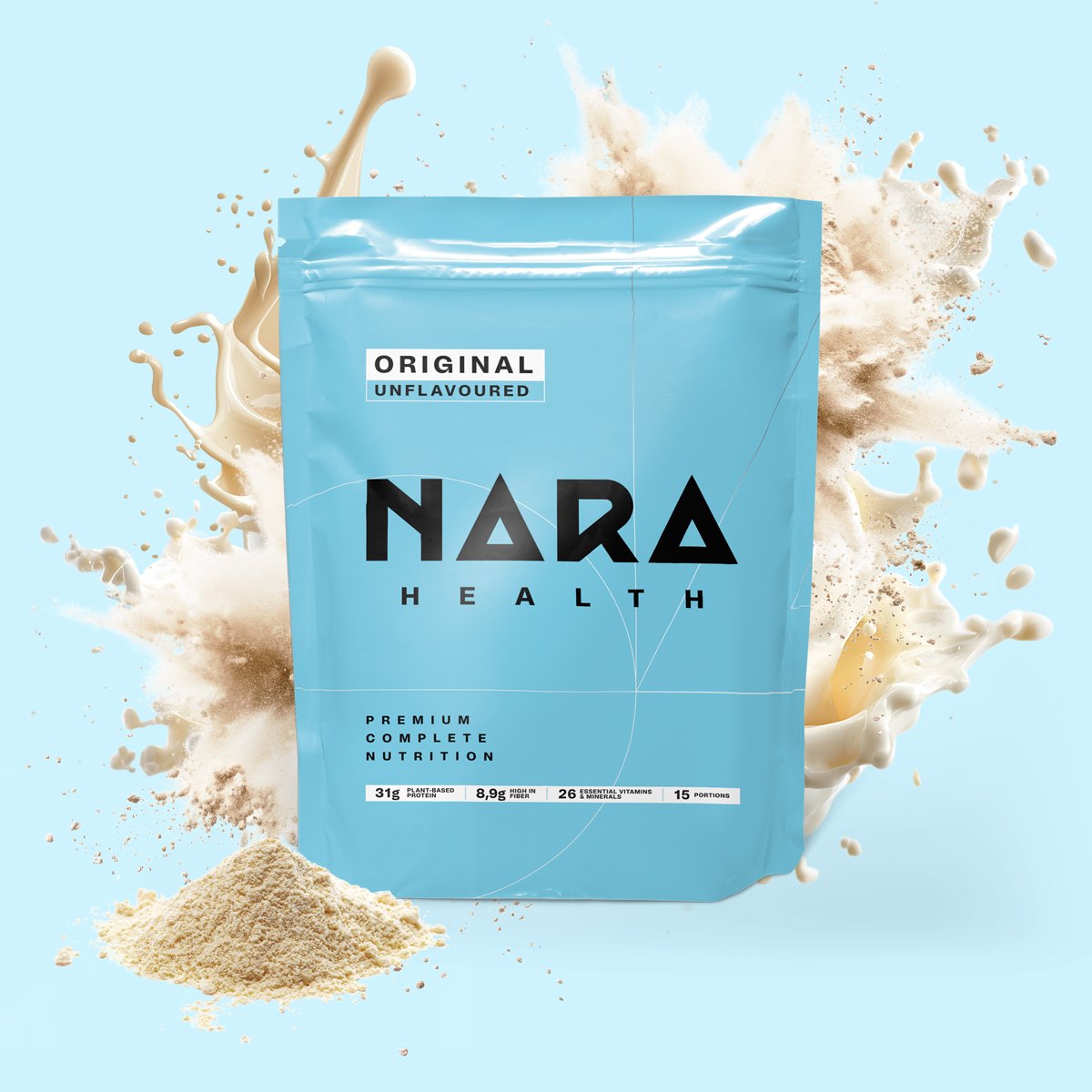 NARA Health sauso maisto mišinys be saldiklių ar kvapniųjų medžiagų, praturtintas vitaminais ir mineralais. Rekomenduojame plakti su vandeniu, vaisiais, augaliniais gėrimais arba kitais mėgstamais ingredientais.